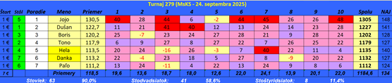 Posledný turnaj pred Bánovským šúľancom, posledná príprava, posledné ladenie formy... v základnej časti sa najlepšie darilo Danovi - chýbalo mu len päť bodov do mgickej 1300 bodovej hranice. A ešte viac smoly mal vo finále, kde ho tesne porazil Tono. V ženskej lige mala viac šťastia Danka, hoci súboj s Helou bol veľmi tesný. A Danka posunula turnajový rekord roka na 1205 bodov. Uvidí sa na vrcholnom turnaji sezóny v sobotu...
